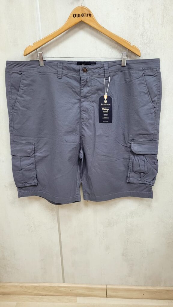 Bermuda Basefield cargo talles especiales en gris y beige, gabardina