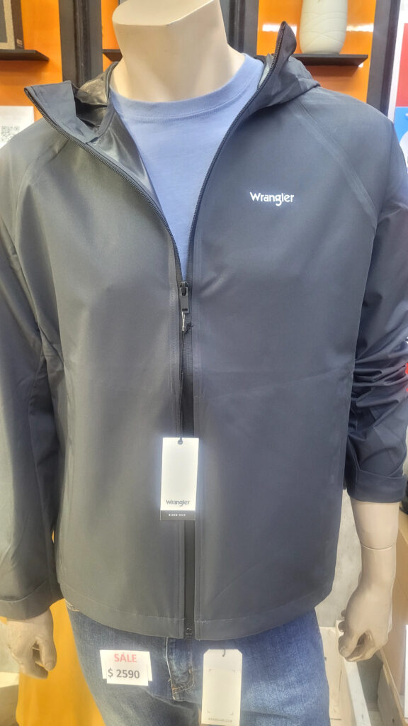 Campera Wrangler jacket Asher impermeable, corta, en negro y gris acero.