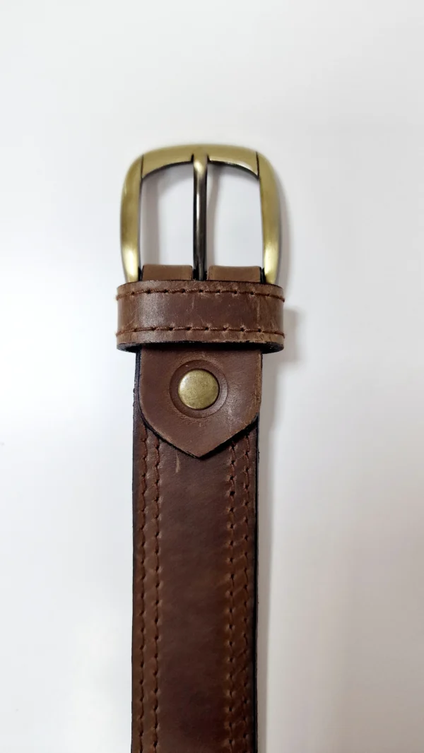 Este cinturón de cuero marrón, con un ancho de 30 mm, es la elección ideal para aquellos que buscan un ajuste perfecto en talles especiales. Fabricado en 100% cuero genuino, este cinturón combina durabilidad y estilo en una sola pieza. El doble pespunte asegura una construcción resistente, garantizando que este accesorio mantenga su forma y funcionalidad a lo largo del tiempo, mientras que su color marrón cálido añade un toque clásico a cualquier atuendo.