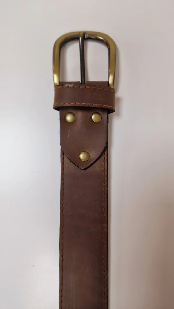 Este cinturón de cuero marrón de 40 mm de ancho es una pieza robusta y estilizada, diseñada para quienes valoran tanto la calidad como la comodidad en talles especiales. Confeccionado en 100% cuero genuino, este cinturón destaca por su pespunte simple que resalta la naturalidad y resistencia del material, garantizando un accesorio duradero y confiable. Su anchura de 40 mm le otorga un aspecto sólido y elegante, ideal para complementar cualquier conjunto, desde lo casual hasta lo más formal.