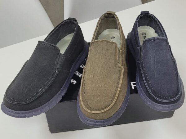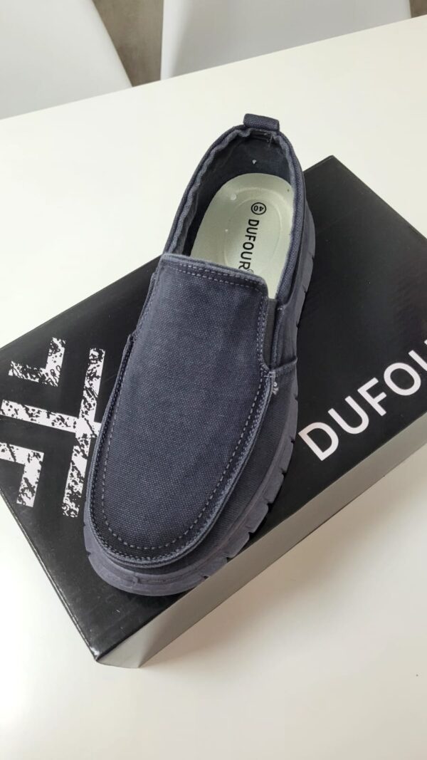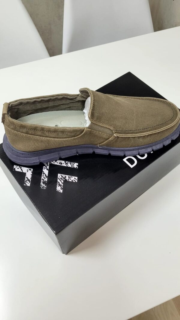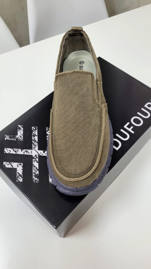 Mocasín de lona Dufour suela blanca o gris, livianito, en beige, azul y girs