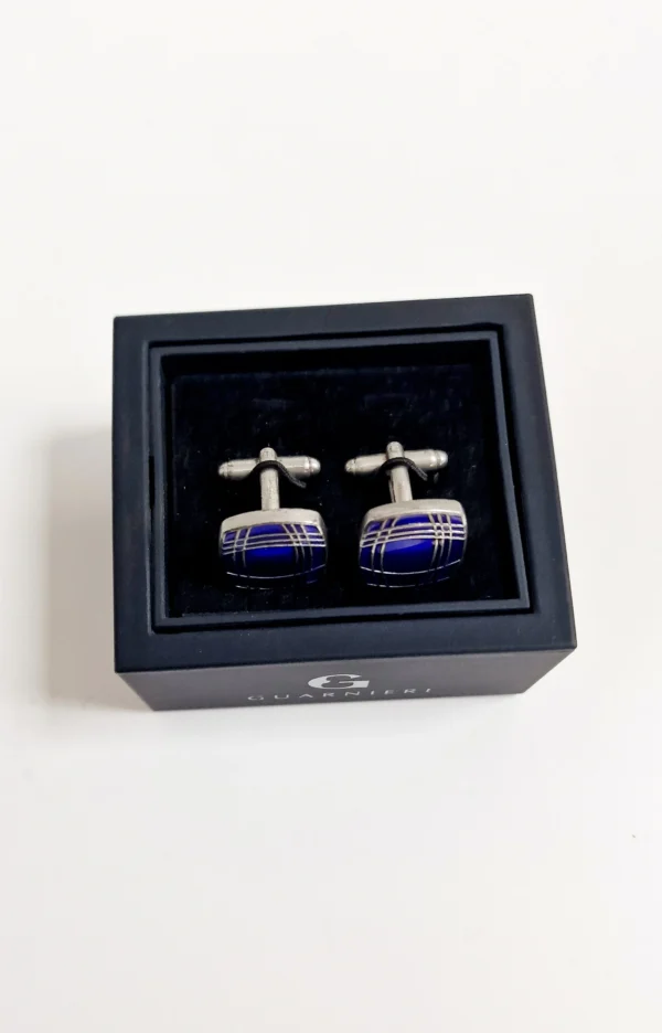 Añadí un toque de distinción y elegancia a tu atuendo con estos gemelos Silver-Blue de Guarnieri. Elaborados con un acabado plateado que emana sofisticación, estos gemelos están adornados con un diseño en azul profundo, complementado por sutiles líneas plateadas que forman un patrón moderno y refinado. Su estilo versátil los convierte en el accesorio perfecto tanto para eventos formales como para reuniones de negocios, elevando tu imagen con un toque de lujo discreto.