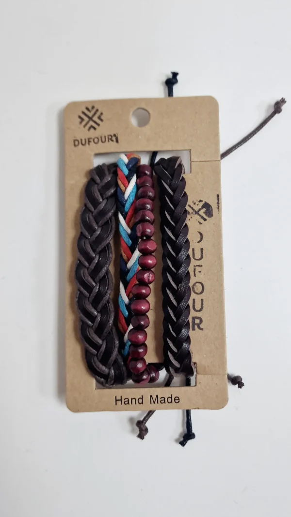 Dale un toque distintivo a tu estilo con este set de 4 pulseras de DUFOUR. Este conjunto combina una variedad de texturas y colores, desde trenzados de cuero en tonos oscuros hasta cuentas de madera y cuerdas coloridas. Este set es ideal para el hombre que busca un accesorio versátil y con personalidad, perfecto para complementar tanto un look casual como uno más audaz.