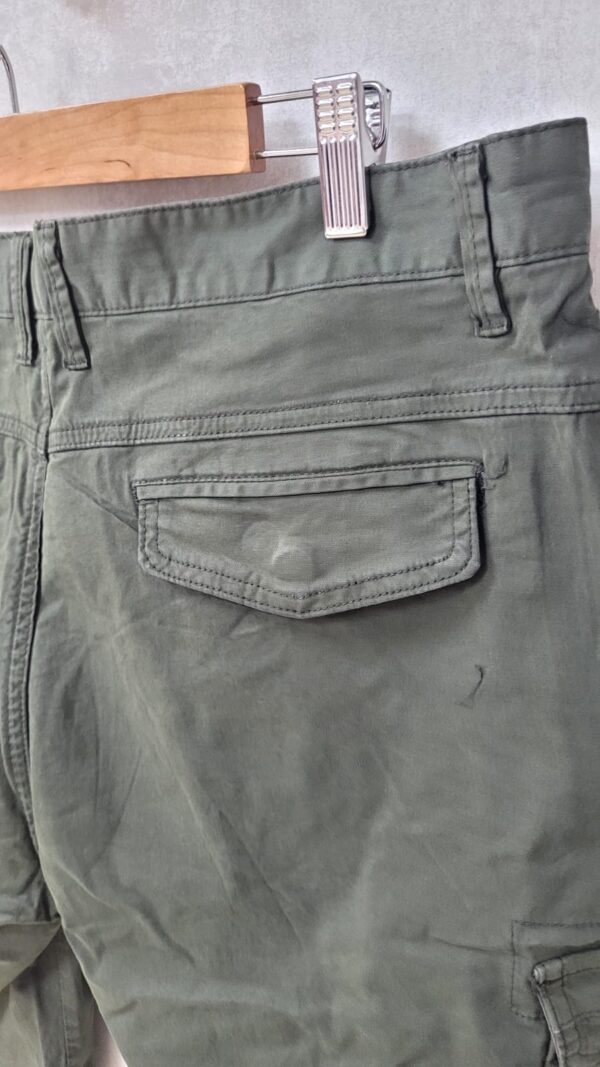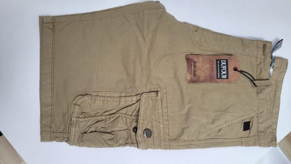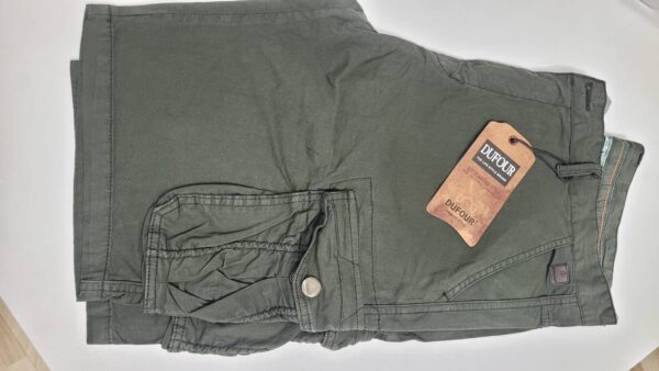Bermuda Dufour cargo algodón, bolsillos con broches, en oliva, gris oscuro y kahhi