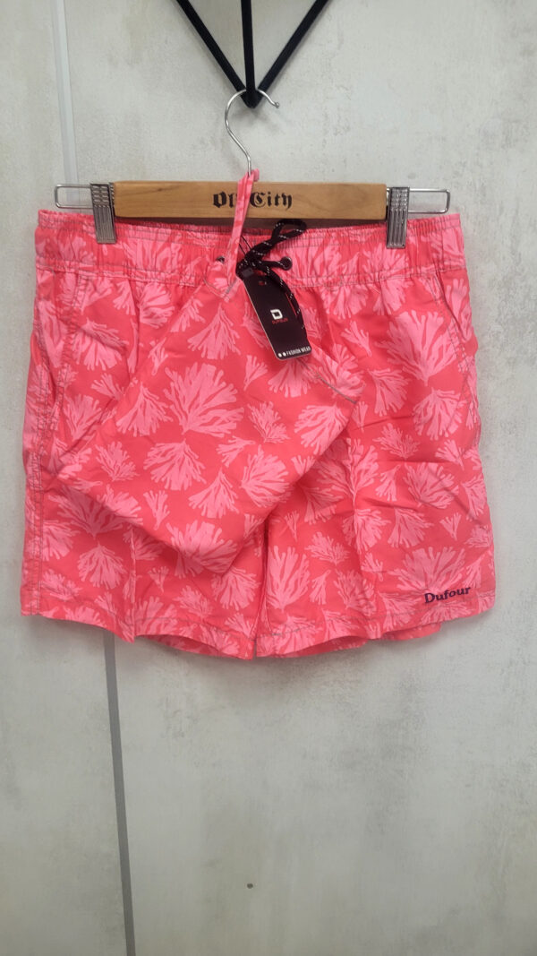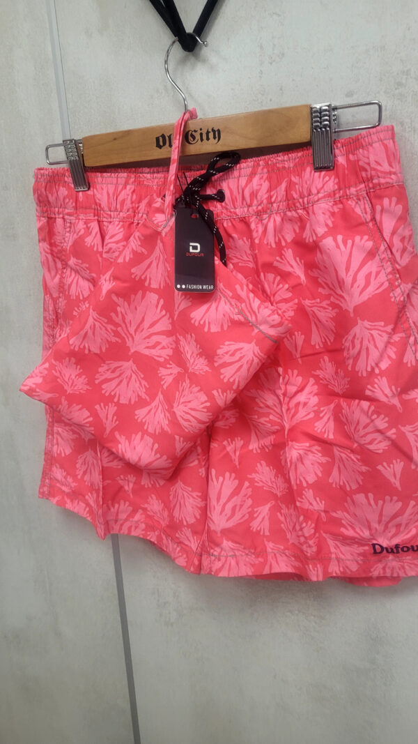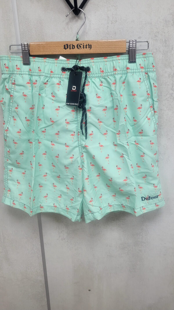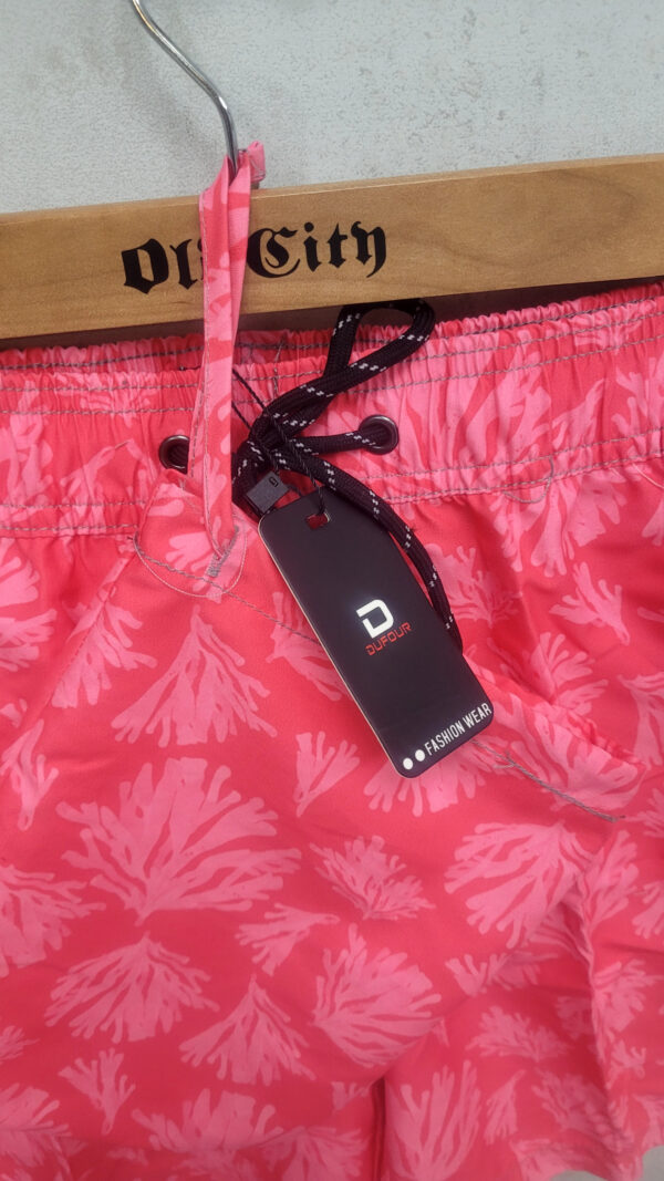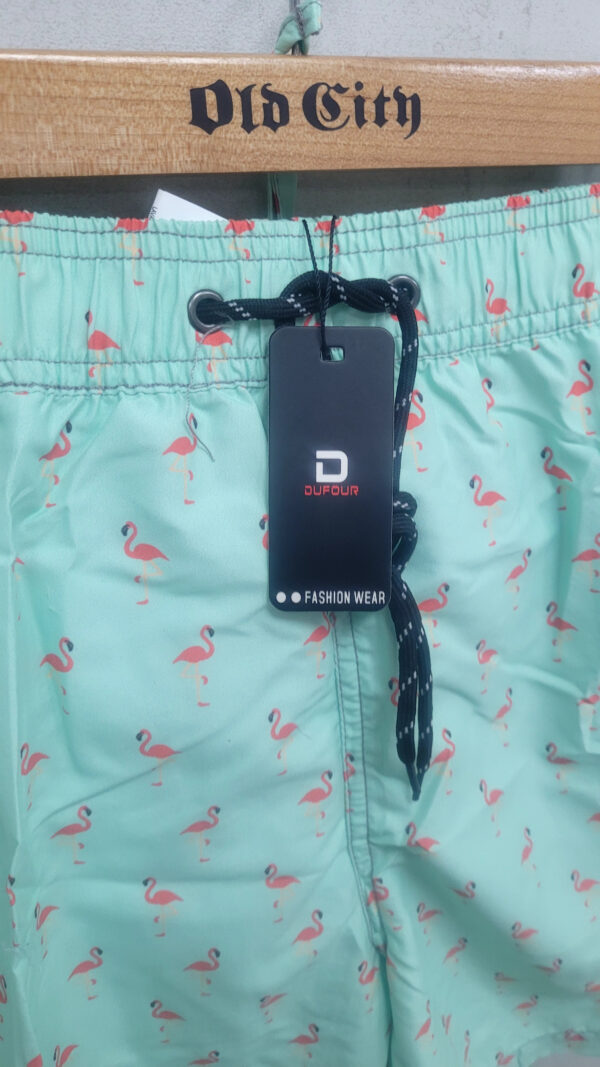 Short de baño Dufour Samoa, estampado, baño, piscina, packing bag, bases rosa, piedra y verde manzana