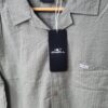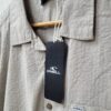 Camisa O´Neill manga corta tipo guayabera bambula, elastizada comfort fit en verde y beige