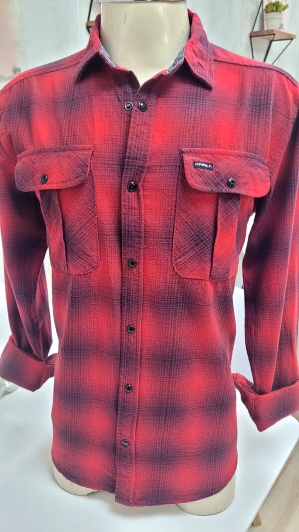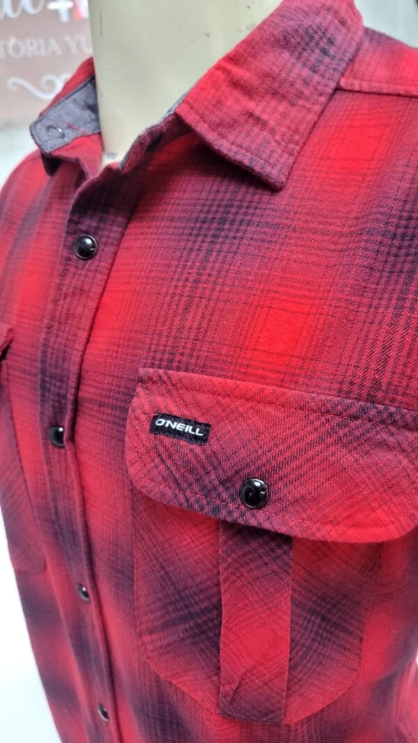 Camisa Oneill viyela, escocesa, 2 bolsillos, broches, roja