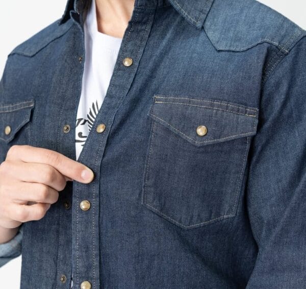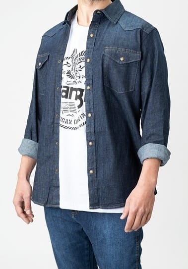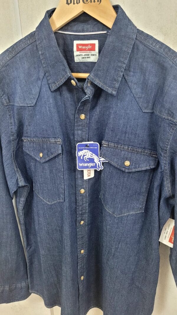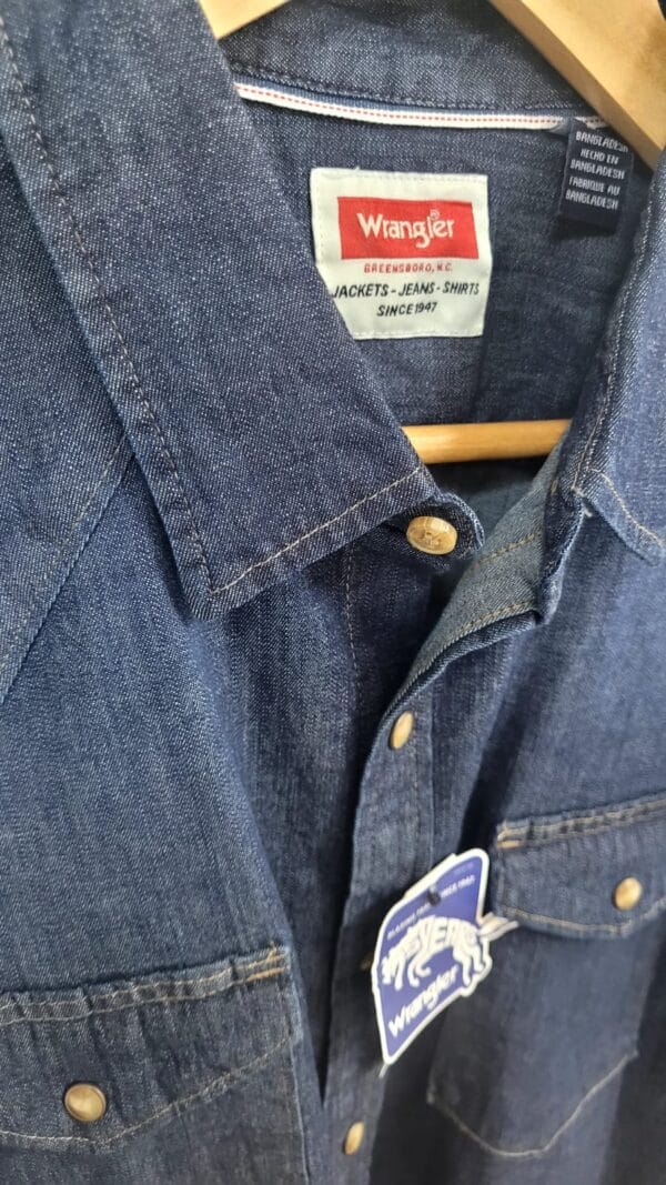 Camisa Wrangler jean con elastano, clásica farwest en azul oscuro