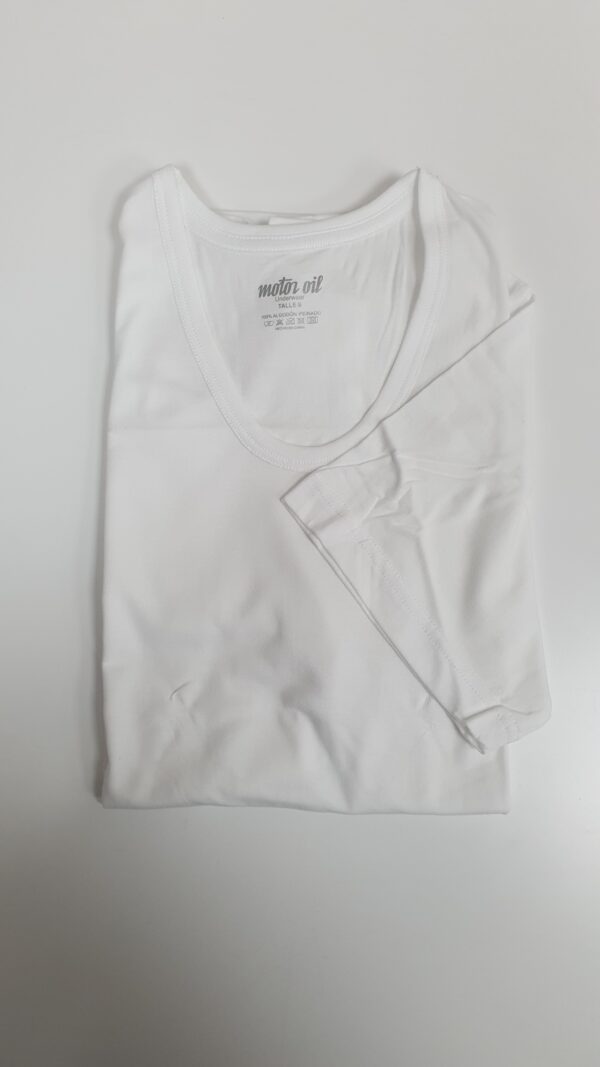 Disfruta del máximo confort con la camiseta interior de manga corta y cuello en V de Motor Oil, diseñada para ofrecer una sensación suave y ligera sobre la piel. Confeccionada en 100% algodón de alta calidad, esta camiseta es la elección ideal para quienes buscan una prenda transpirable y natural, perfecta para usar bajo cualquier atuendo o como una camiseta básica.